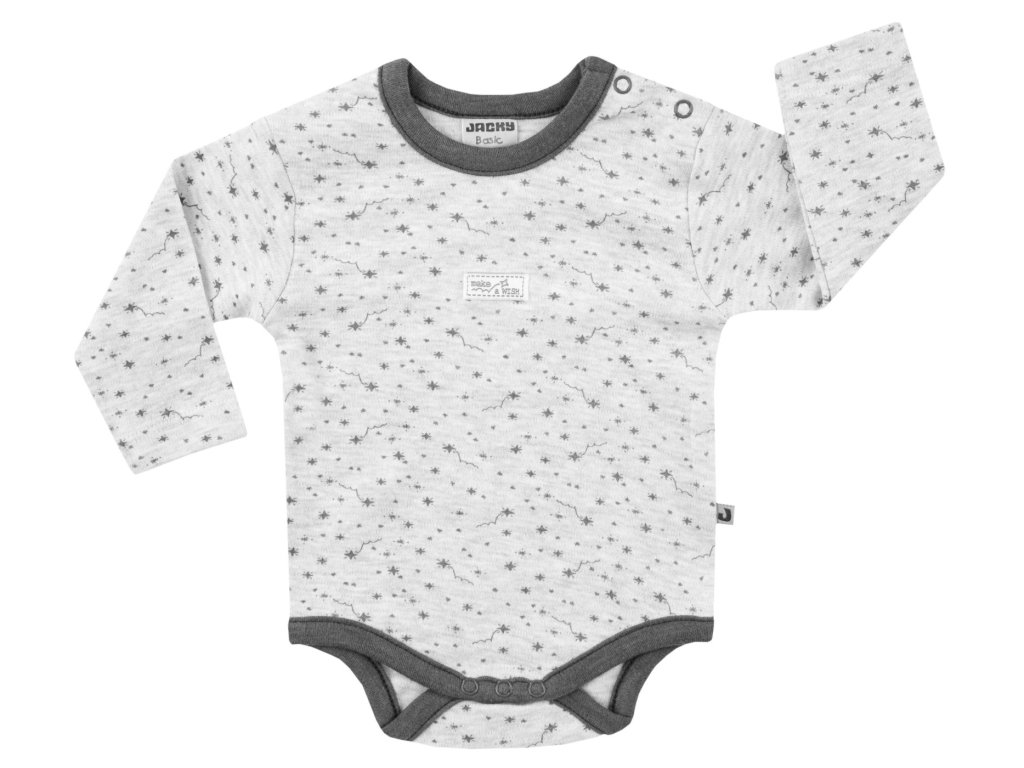 Dětské body s dlouhým rukávem s drobným potiskem hvězdiček. Velmi příjemná bavlna. EKO-TEX Standard 100 certifikát. VFI Social fair.
