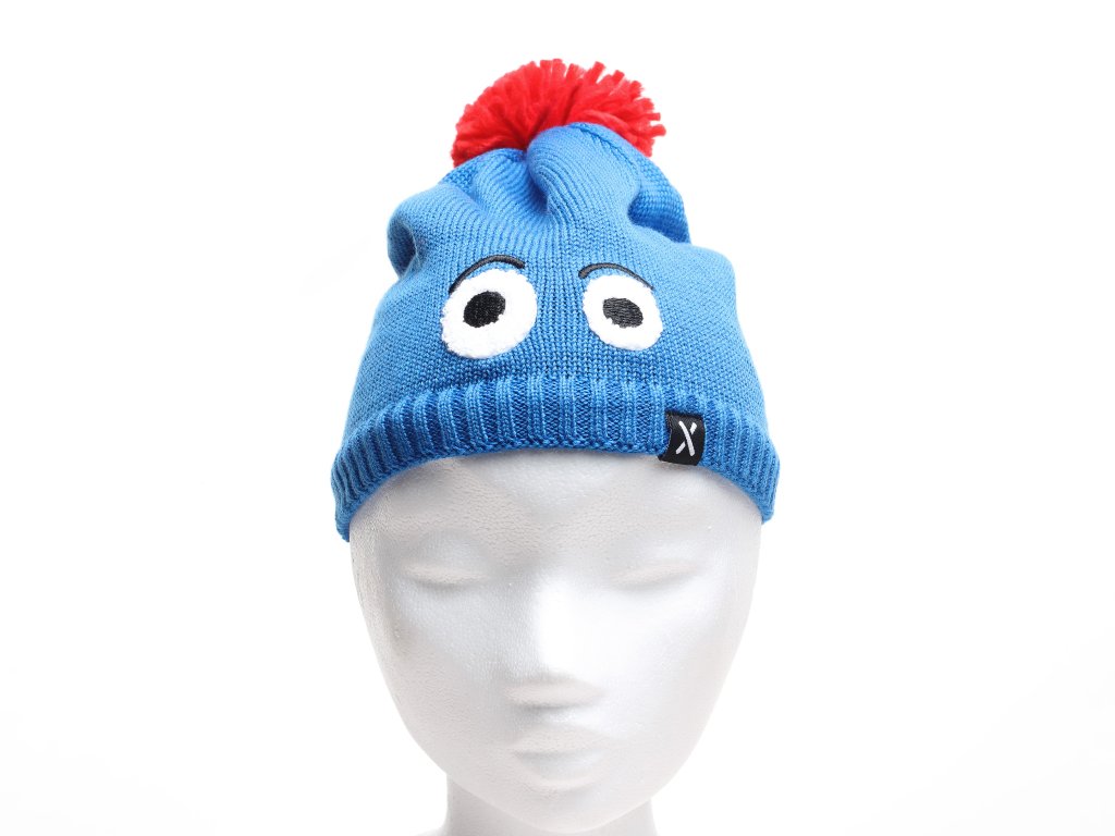Dětská zimní čepice s bambulí, teplou fleecovou podšívkou a roztomilým hladícím ksichtíkem. Královsky modrá čepice pro kluka s červenou bambulí. Do setu s nákrčníkem. Německá kvalita.