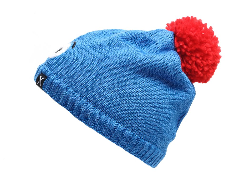 - Barevná kombinace : královská modř s červenou bambulí a jazykem, bílými froté zuby a kukadly, a s tmavě modrou fleecovou podšívkou.