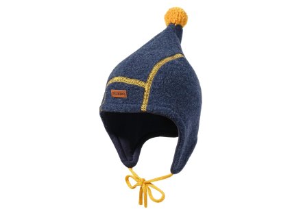 Dětská zimní vlněná ušanka s podšívkou ze 100% bavlny. Dlouhé strany přes uší, skřítovská špička s bambulí a zavazováním na šňůrku. Barevná kompozice tmavě modré s tmavě růžovou. Zahřeje, netlačí, nekouše, a je prodyšná. Německá kvalita.