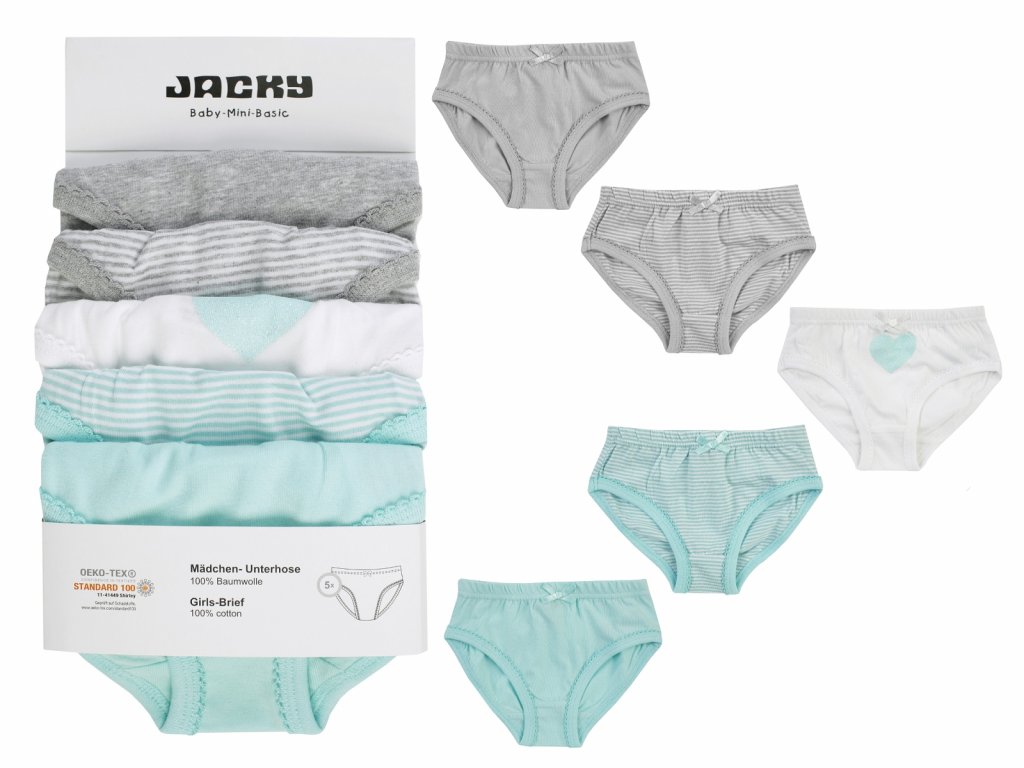 Dívčí kalhotky ze 100% bavlny a ozdobnými lemy v tyrkysové, bílé se třpytivým srdcem, šedé, nebo pruhované. Německá kvalita, OEKO-TEX Standard 100, VFI Social fair.