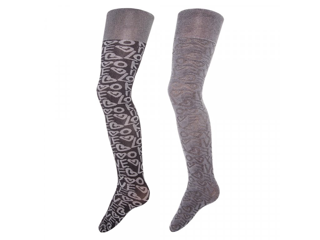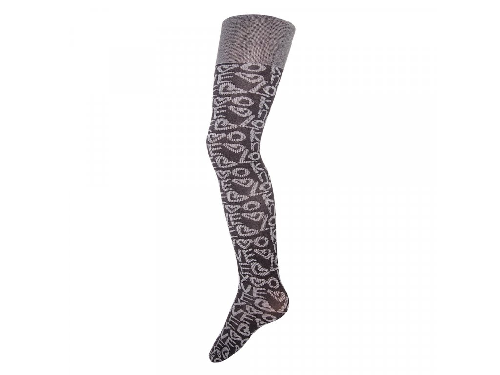 - Dívčí punčocháče - silonky černé a šedé se vzorem (nápisy LOVE a srdíčka).