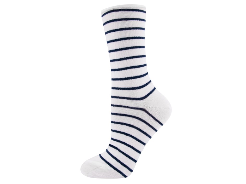 Dětské ponožky z organické bio bavlny pro holku i kluka. Certifikát GOTS, CERES 0543. Světlé-bílé ponožky s drobným tmavě modrým proužkem pro holku i kluka. Ponožky se širokým volným lemem, který netlačí. Německá kvalita.