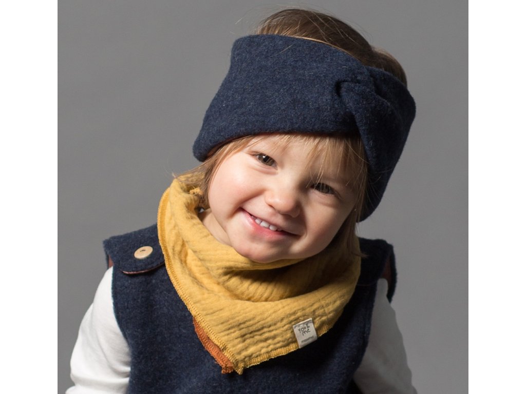 Jemný šátek z bio bavlny pro chladnější počasí, dvouvrstvý, každý díl v jiné barvě (tmavě skořicová/světle šedá). Šátek se nosí kolem krku, nebo lze uvázat kolem hlavy, či splést dlouhé vlasy. Jedna velikost 66 cm dlouhý, 30 hluboký trojúhelník, v čelence sešitý. Jemně mačkaný vzor. Módní a praktický doplněk. GOTS.