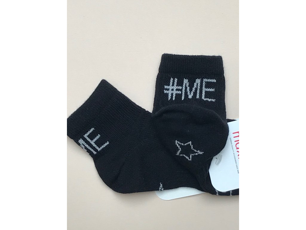 Černé dětské ponožky s profilovaným nártem a kotníkem. Na chodile hvězdy, na achilovce #ME nápis. Velmi příjemné a pružné. Německá kvalita. OEKO-TEX certifikát.