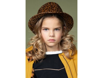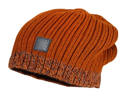 - Čepice zdobená drobným měděným srdíčkem s logem značky