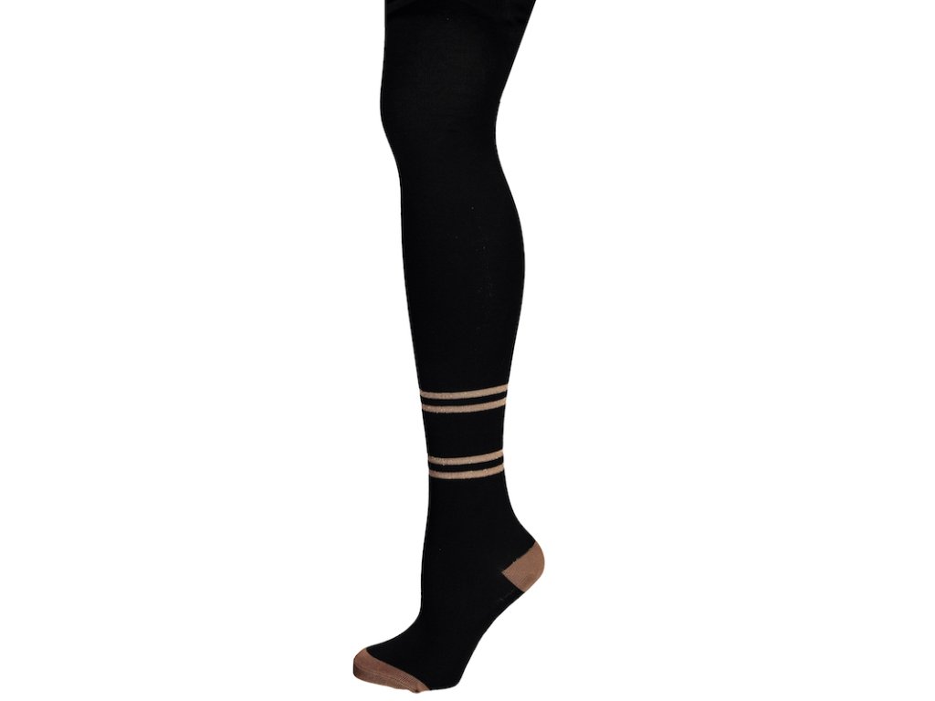 - Dívčí punčocháče černé se skořicovou patou/špičkou a drobným proužkem nad kotníkem se třpytivou nitkou