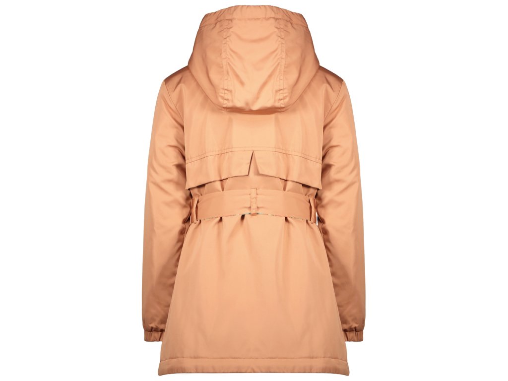 Dlouhý jarní kabátek pro holky s kapucí. Lehounká parka v toskánské barvě s barevnou podšívkou v kapuci a pásku. Trenchcoat/ Kabát pro holku od jara do podzimu od holandské značky NoNo.