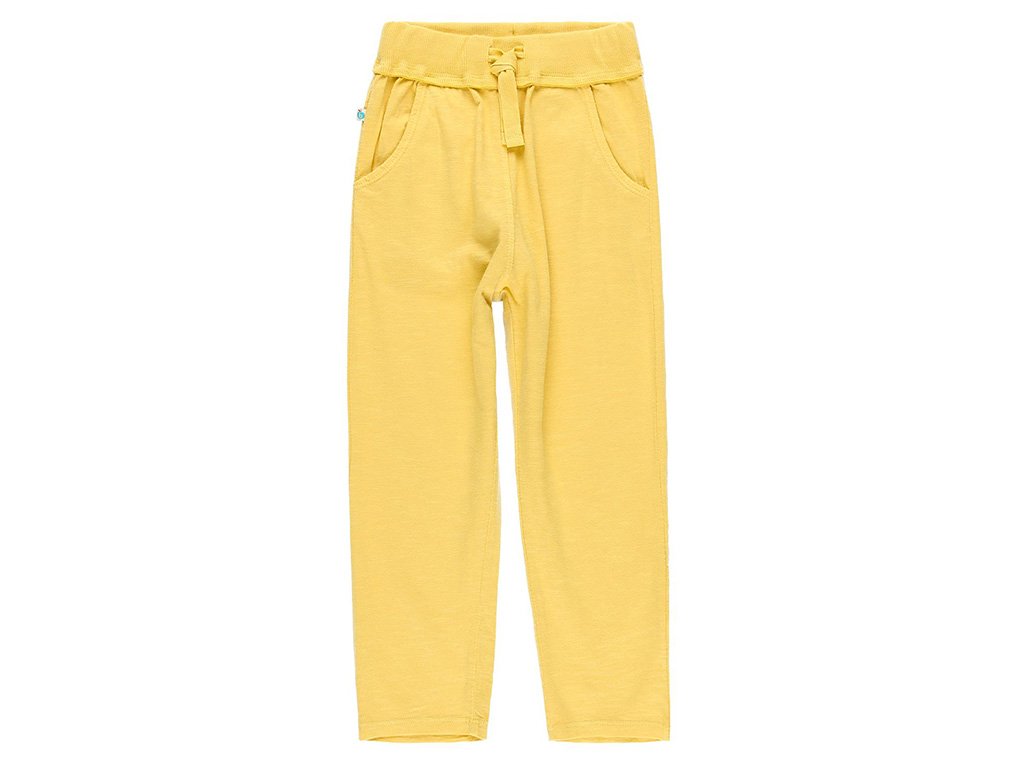 - Volnější dívčí tepláky s kapsami ze 100% bio bavlny žluté barvy (sluníčko/ grapefruit).