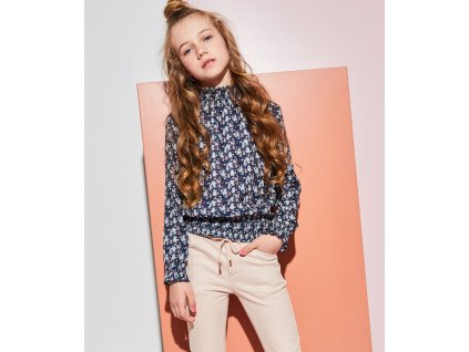 - Doporučujeme s tmavě modrou květovanou blůzou a elegantními kalhotami z pružné viskózy.
