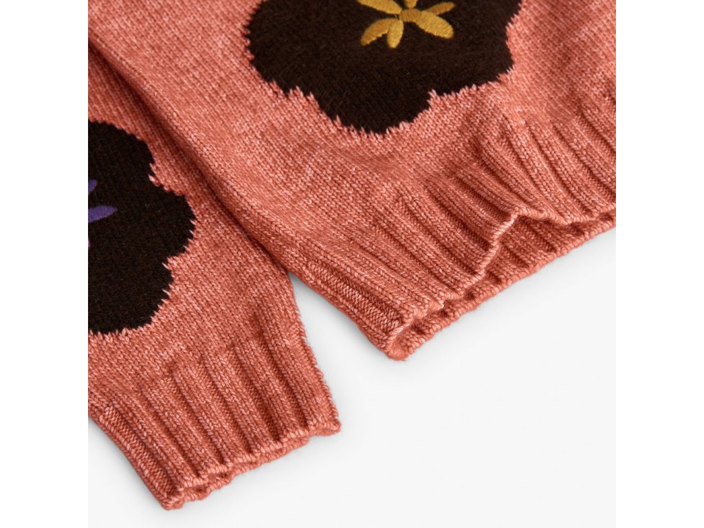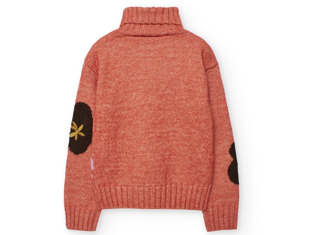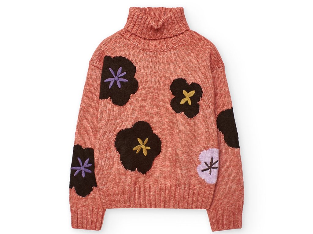 Dívčí svetr z jemné pleteniny v přírodní jílově oranžové barvě a s výšivkou tmavých květů. Žebrově ukončený. Velmi příjemný a měkounký materiál. Kolekce Boboli podzim zima 2026