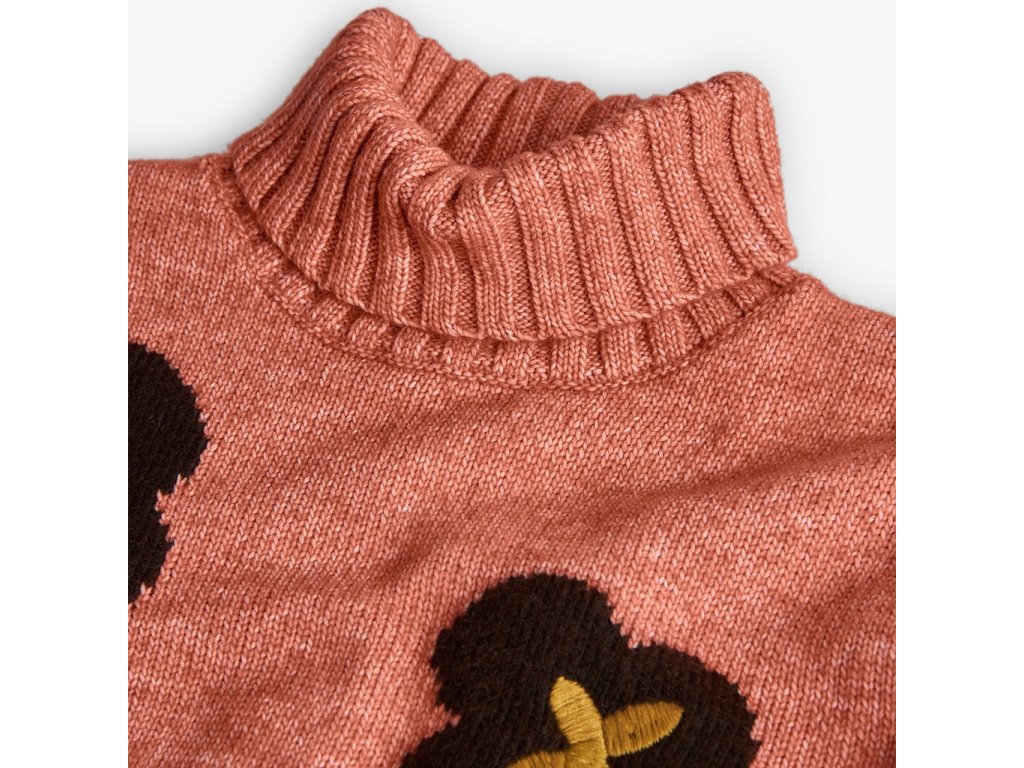 - Veselý svetr pro holku, měděné barvy s velkou nášivkou květů.