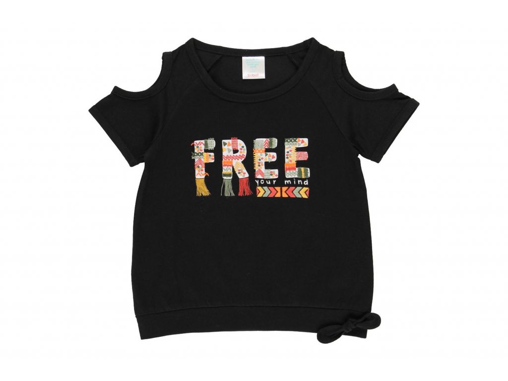 Černé tričko s odhalenými rameny a barevnou nášivkou FREE your mind s africkými motivy. Velmi příjemná 100% bavlna. Kolekce Afrika od Boboli