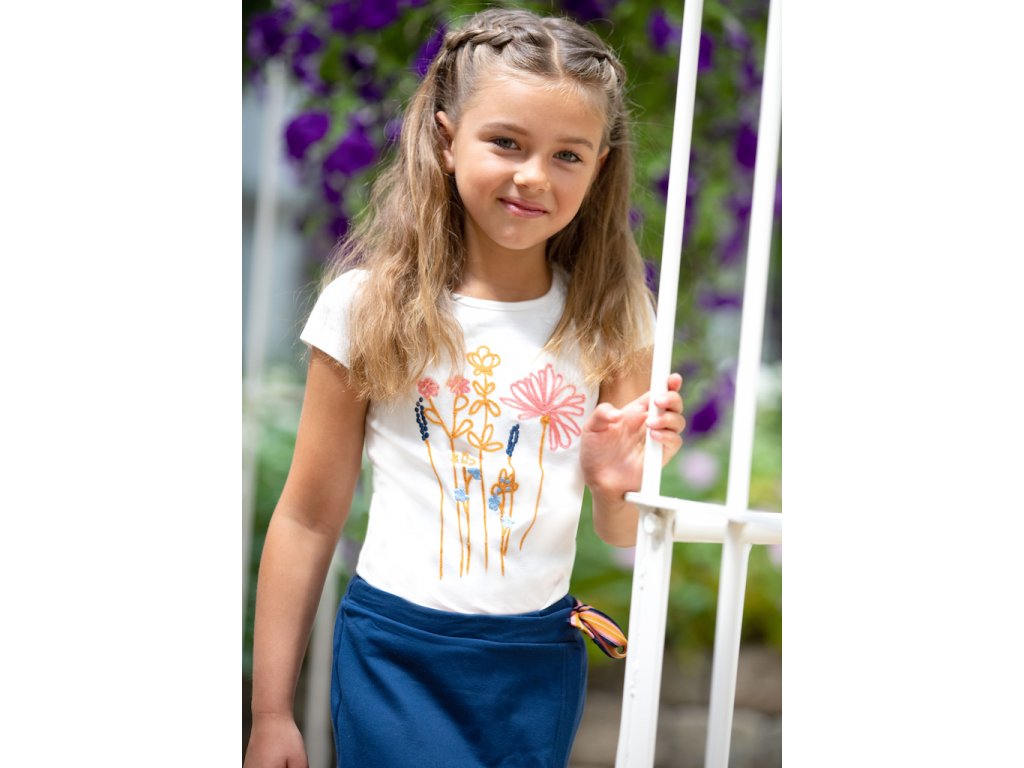 Dívčí tričko krémově bílé s výšivkou bílý top pro holku kytičky B-Nosy Y202 5433 020 a