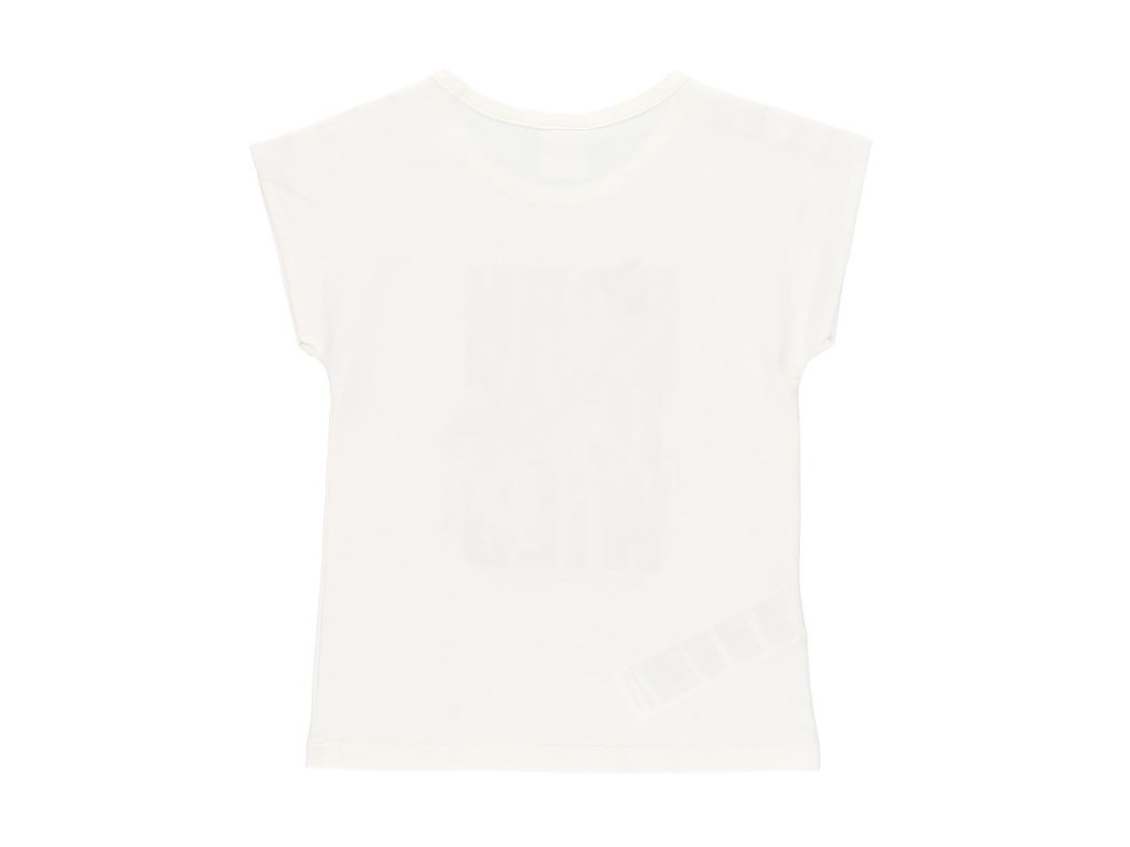 - Světlé tričko pro holky, s mini rukávy a černobílým potiskem.