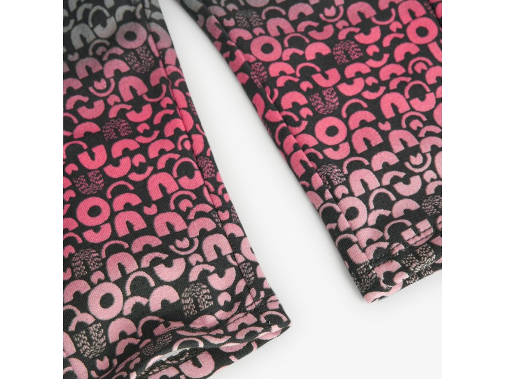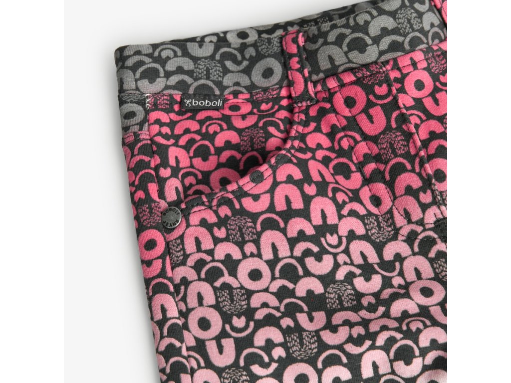- Pružné bavlněné kalhoty ve stylu džínů s jemným fleecem a potiskem v růžových, bílých a šedých tónech.