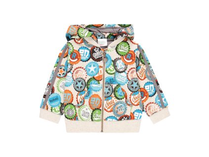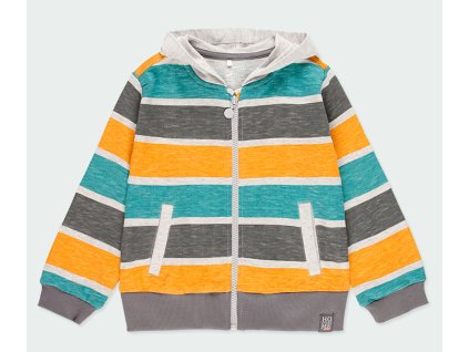 Chlapecká mikina na zip a s odepínací kapucí s moderním vzorem světle šedé a hořčičně žluté barvy. OEKO-TEX certifikát. Amfori udržitelná móda od Boboli.