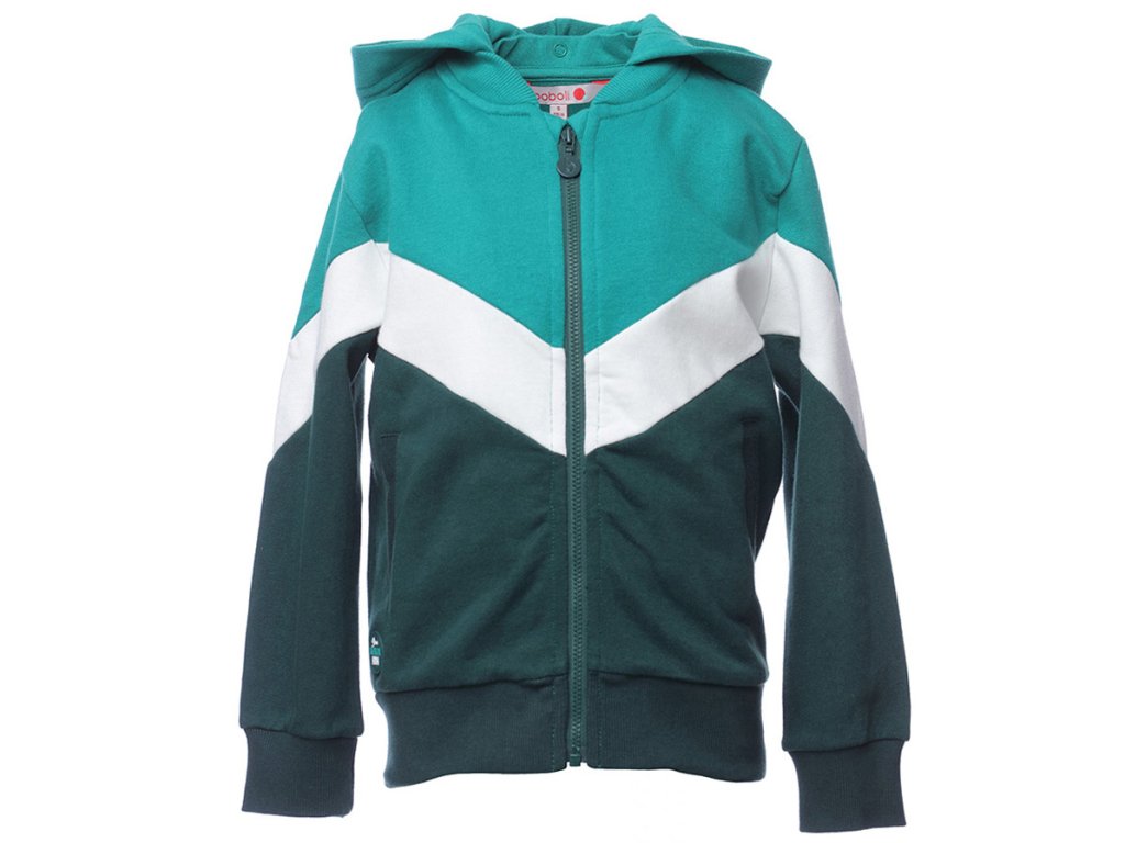 Mikina na zip s odepínatelnou kapucí a jemnou fleecovou podšívkou, pružným ukončením rukávů a spodního lemu, ze 100% bavlny v zeleno-bílé barvě (kulečník).