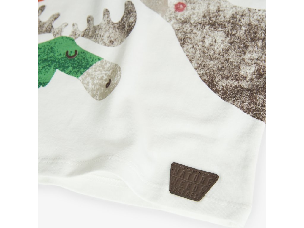 - Tričko s jemným potiskem lesních zvířátek (liška, los, medvěd) v přírodních odstínech (hnědá, zelená, khaki, antracit, oranžová).