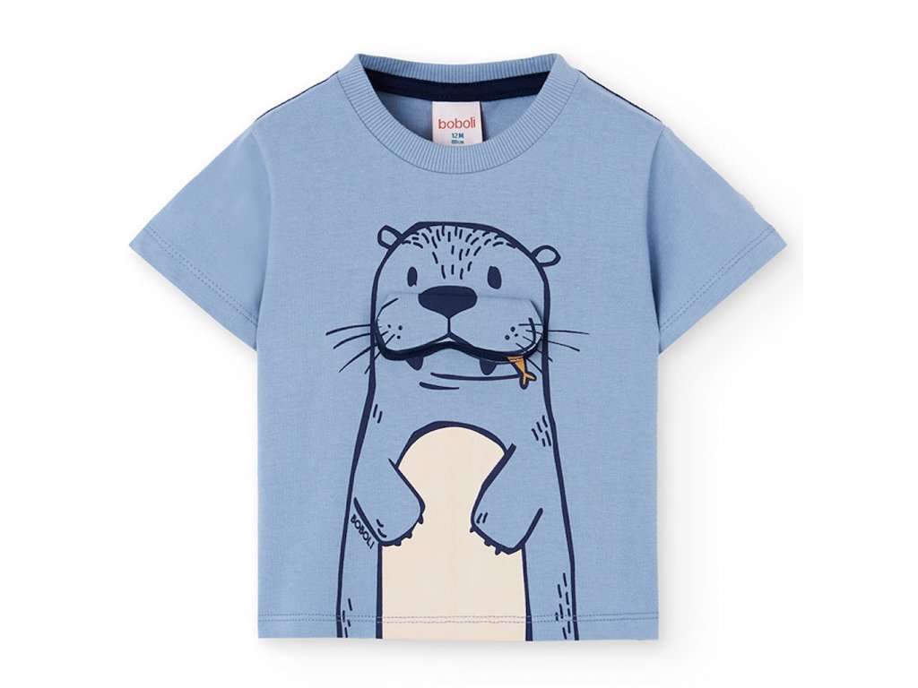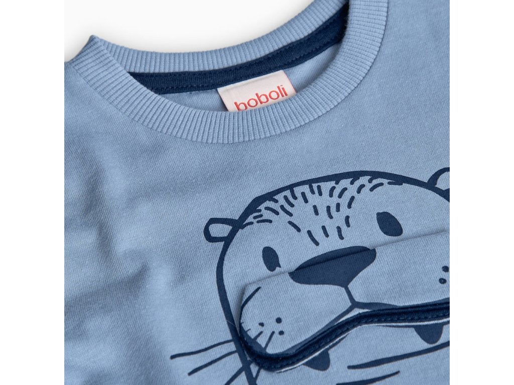 Chlapecké tričko s krátkým rukávem ze 100% bavlny. Světle modré tričko s potiskem mrože s hravou nášivkou otevírací tlamičky. Španělská značka Boboli.
