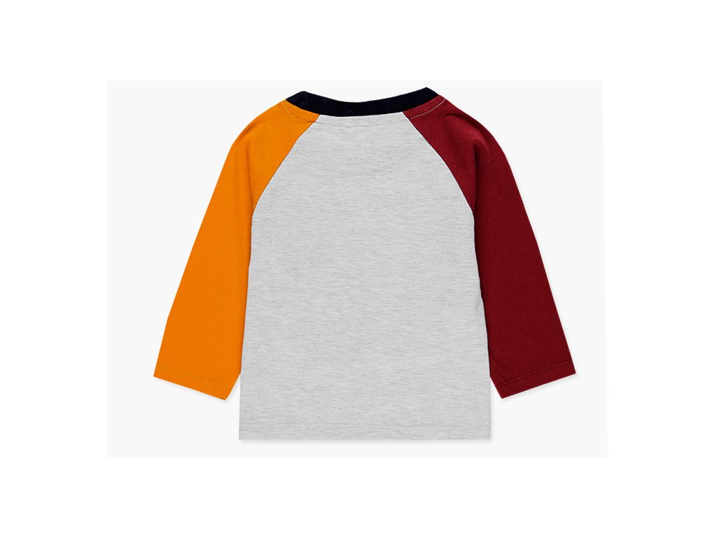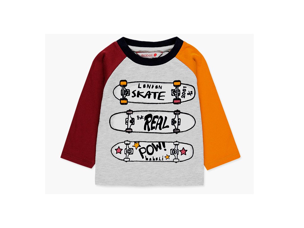 Volné tričko pro malého skejťáčka :). Tričko s dlouhým rukávem, hladícím plyšovým potiskem apěkného raglanového střihu, zvýrazněného jinou barvou každého rukávu.