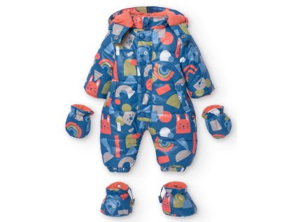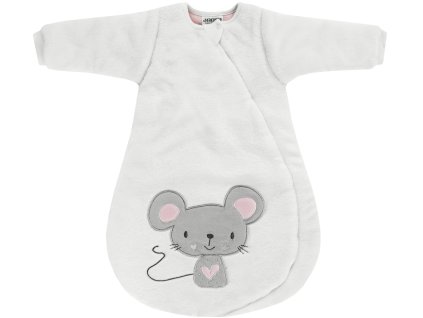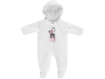 Chlupatý overal pro miminko z bílého fleecu, bavlněnou podšívkou se zvířátky v celé části a...