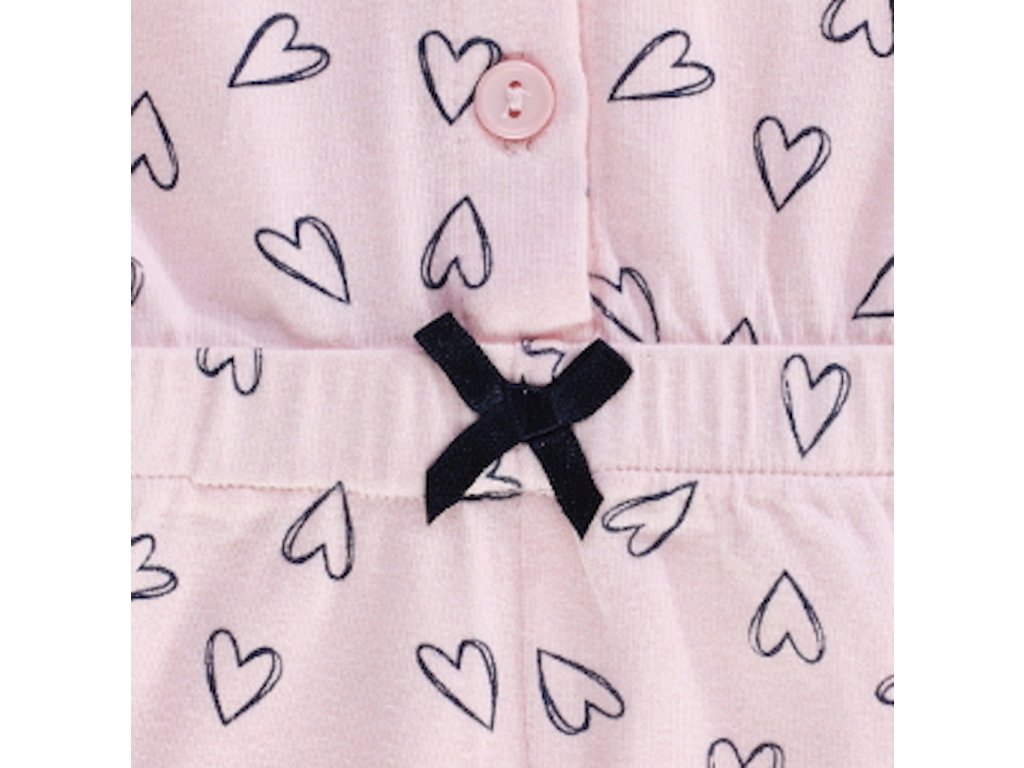 - Světlounce růžový letní overálek s tmavě modrými srdíčky.