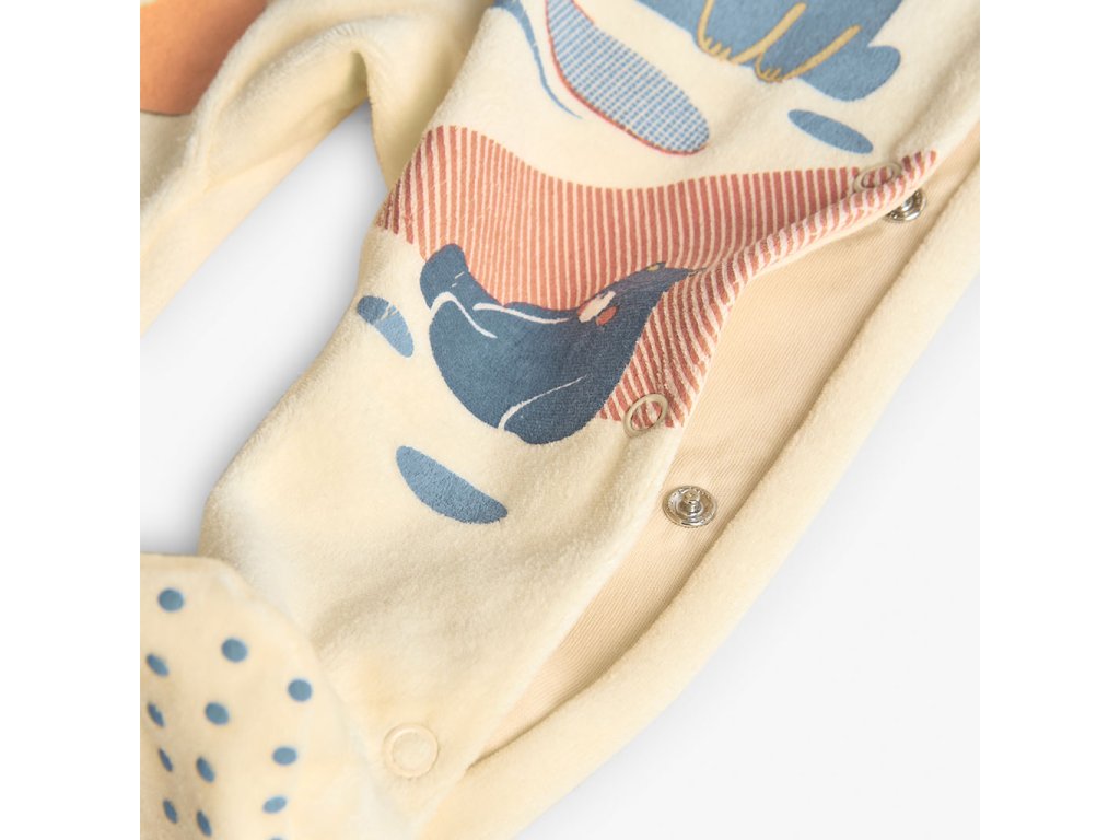- Nohavice ukončené ťapkami s tečkovaným protiskluzem pro zábavu kojence a praktičnost pro batole.