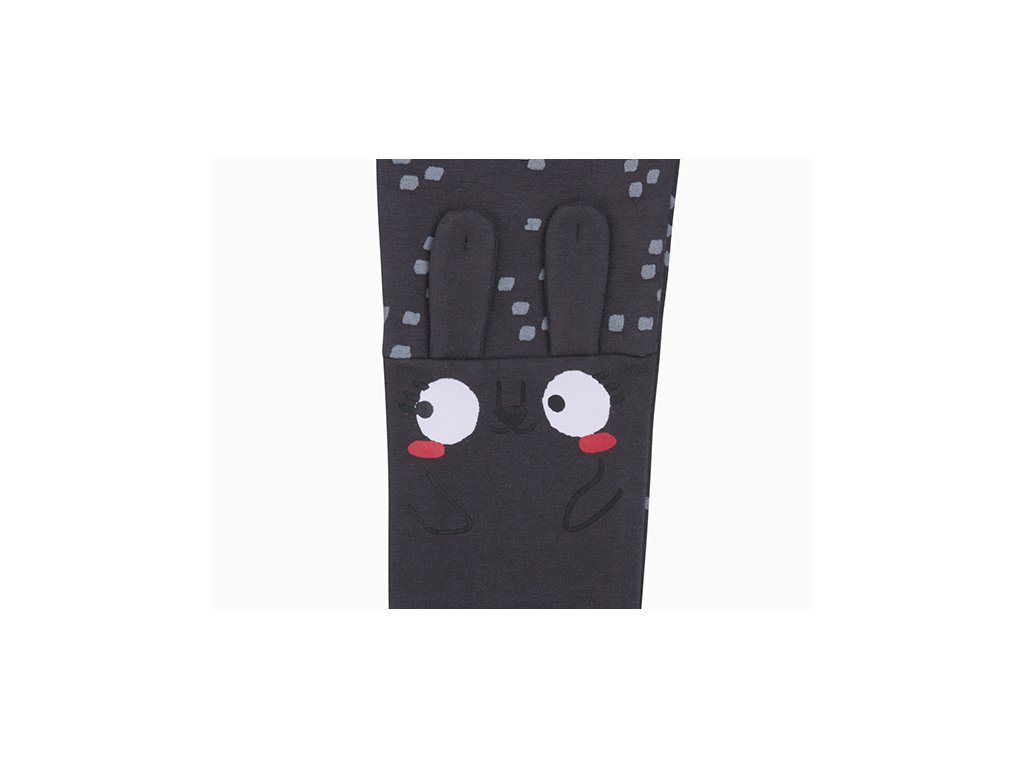 - Lehce zateplené legíny s pružnou širokou gumou v pase mají na jedné nohavice našitého roztomilého ušáčka v kombinaci s potiskem.