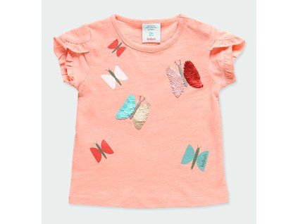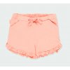 Lososově růžové kraťásky s volánky pro holčičku do 6 let. Příjemná a pružná bavlna. OEKO-TEX certifikát. Amfori udržitelná móda od Boboli.