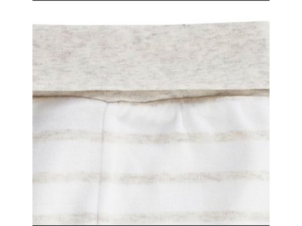 Dvoje bavlněné tepláčky s ťapkami pro hočičku i chlapečka v béžovém melíru nebo s jemným proužkem. Široký pružný pas. Velmi příjemná a pružná 100% bavlna. OEKO-TEX certifikát. VFI Social