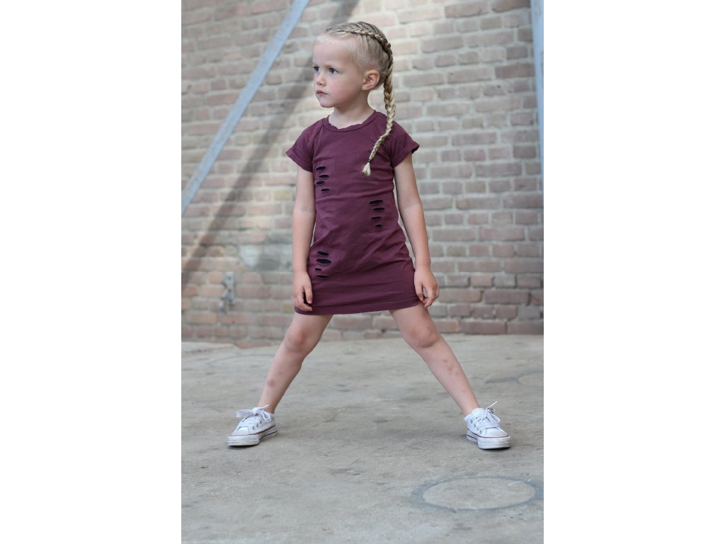Strečové bavlněné šaty s krátkým rukávem a délkou nad kolena a s ozdobnými falešnými rozpáranými záplatami. Street style