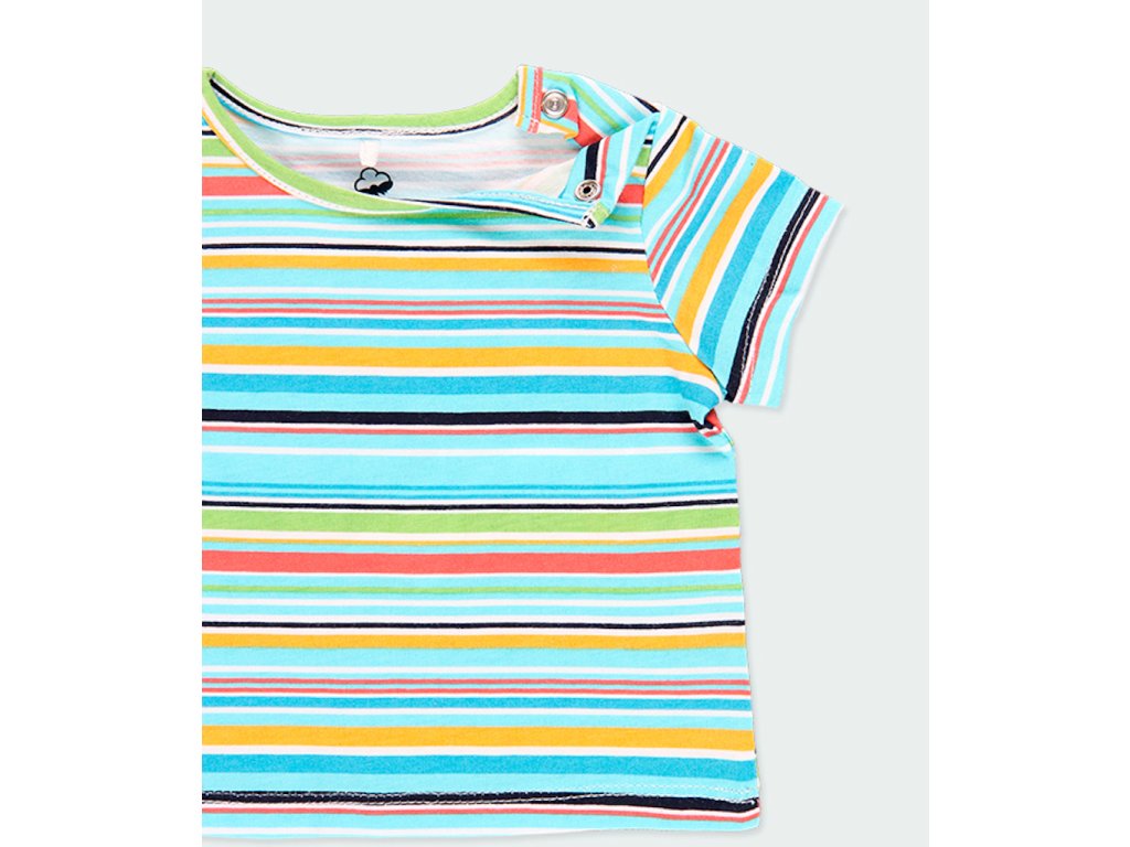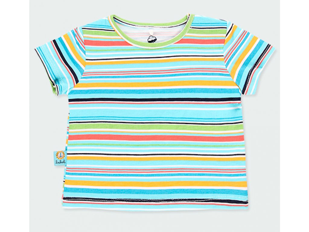 Pruhované tričko pro chlapečka i holčičku s krátkým rukávem. Veselé pestrobarevné tričko ze 100% bio bavlny. Do setu se šortkami a bryndáčky. GOTS a OEKO-TEX certifikát. Amfori udržitelná móda od Boboli.