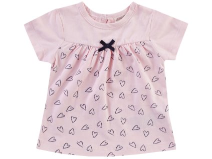 Růžové tričko pro holčičku, s krátkým volánkovým rukávem a jemnými růžičkami. 100% bavlna s drobným elegantním vzorkem a mašličkou. Do setu s tepláčky a zapínací mikinkou. OEKO-TEX certifikát.