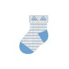 Bavlněné ponožky pro chlapečka se zdvojeným, volně ohrnutý pružný lemem, který netlačí. Příjemné a pružné ponožky ve světle šedém melíru s modrými autíčky a proužky. Německá kvalita. OEKO-TEX.