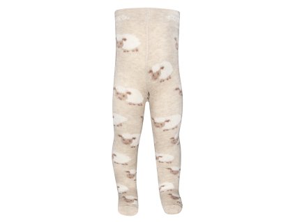 Dětské punčochové kalhoty zdobené vyplétanými hlavičkami mývalů s dlouhými hravými chloupky. Široký pružný lem. Barva: hořčičně žlutá (kari), béžová a bílá.
