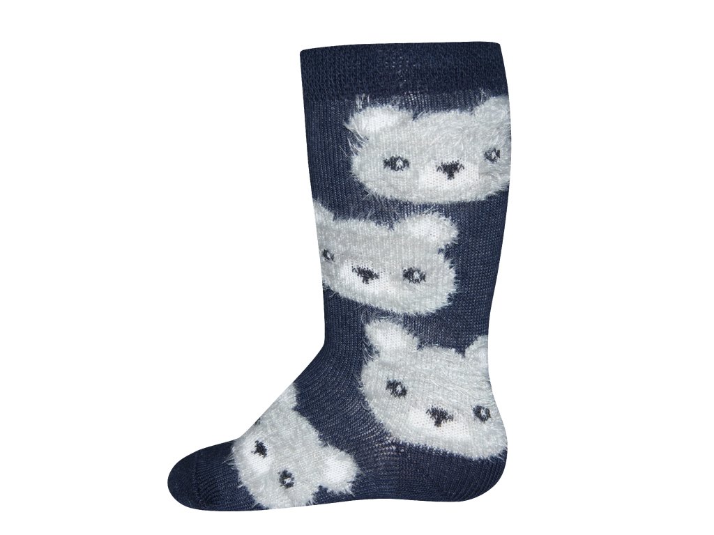 Dětské podkolenky s roztomilými medvídkami s chlupatými hlavičkami (buklé), moc pěkný detail v tmavě modré a světle šedé kompozici. Široký pružný lem, který dobře sedí ale netlačí. Příjemný a pružný materiál. OEKO-TEX certifikát.