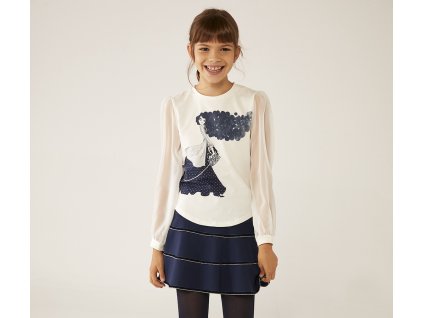 - Pletený top s dlouhým rukávem a vsazená tylová sukně