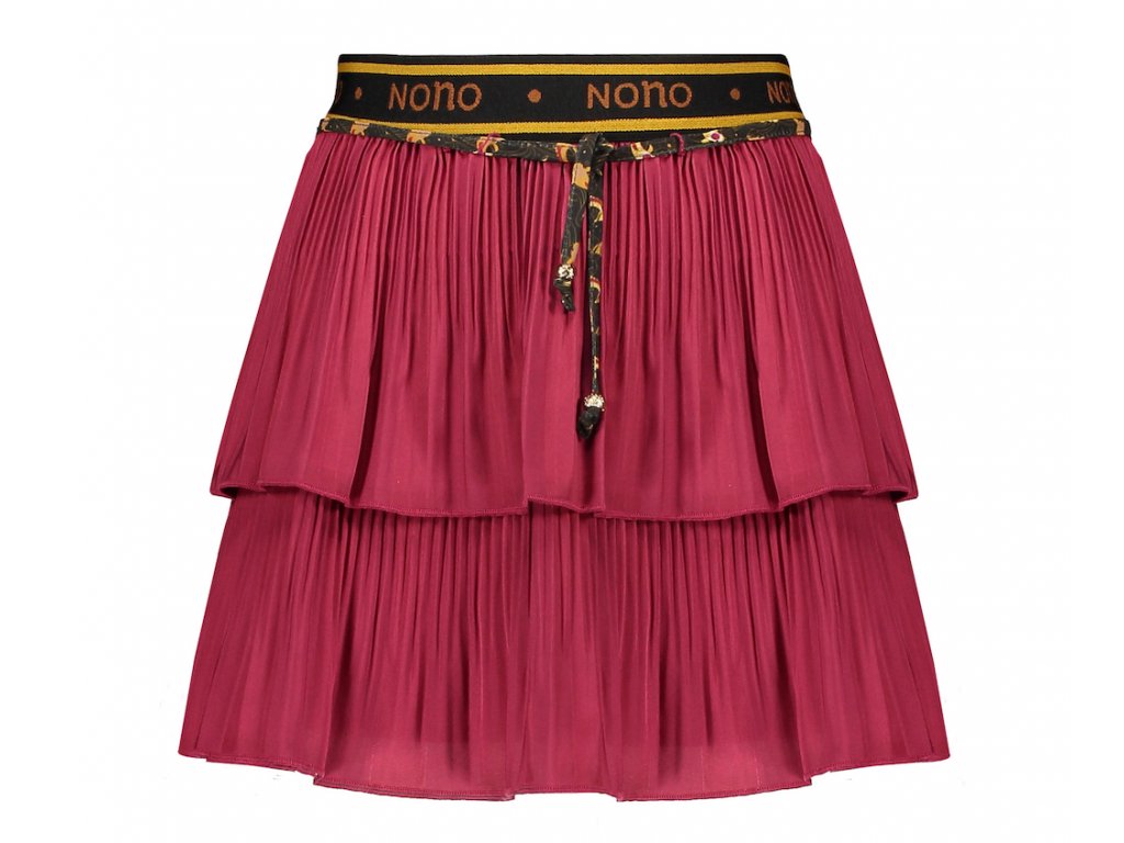 Dvoustupňová skládaná sukně pro holku, lehounký hladký materiál s bavlněnou podšívkou a pružným pasem v nádherné purpurové barvě a s přirozeným točivým efektem od Holandské značky NoNo.
